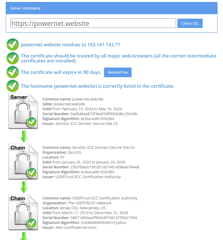 Bây giờ mình sẽ sử dụng các trang check SSL online để kiểm tra online và kết quả đã thành công.