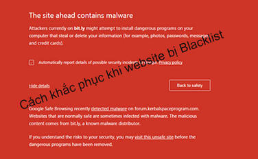 Website bị Google Blacklist – Danh sách đen của Google cập nhật khoảng 10.000+ trang Web mỗi ngày. Khi một trang web được thêm vào danh sách đen của Google, điều đó có nghĩa là Google và các công cụ tìm kiếm khác đang đánh dấu trang Web là không an toàn và độc hại. Nhóm bảo mật của Google Google xác định các trang Web là không an toàn và thông báo cho người dùng và quản trị viên web về tác hại tiềm ẩn.