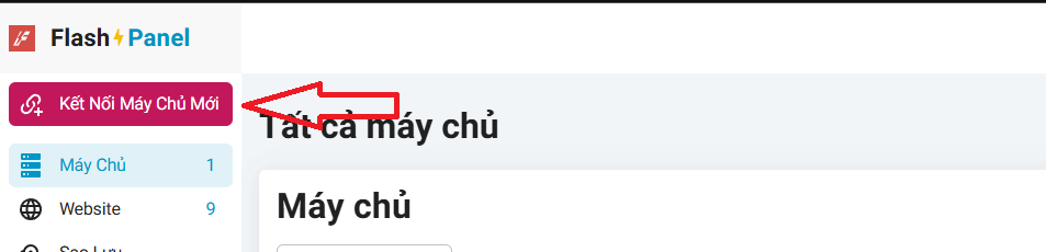 Sau khi đăng ký và kích hoạt tài khoản thành công bạn sẽ đến giao diện chính của FlashPanel. Tại đây bạn nhấn vào nút Kết Nối Máy Chủ Mới (Connect New Server)