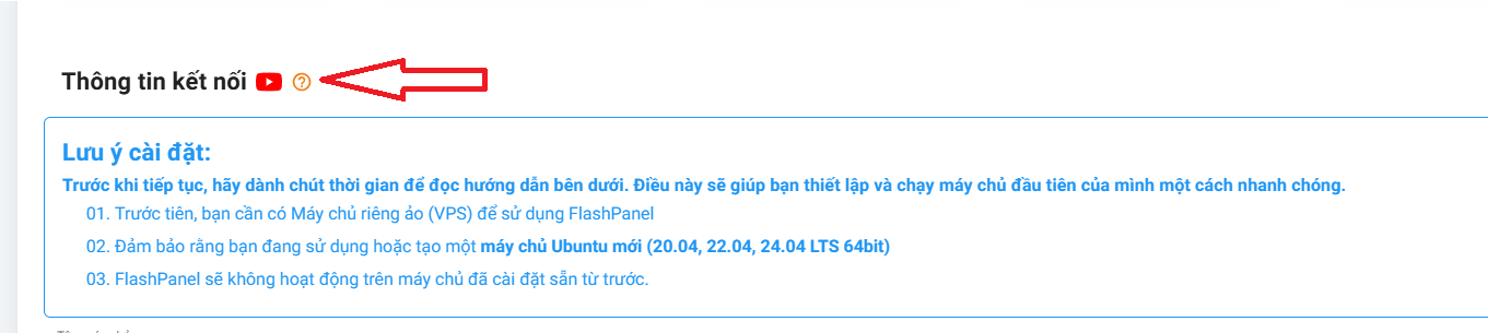 Khi FlashPanel cài đặt hoàn tất, trên trang giao diện chính bạn sẽ thấy thông tin máy chủ kết nối