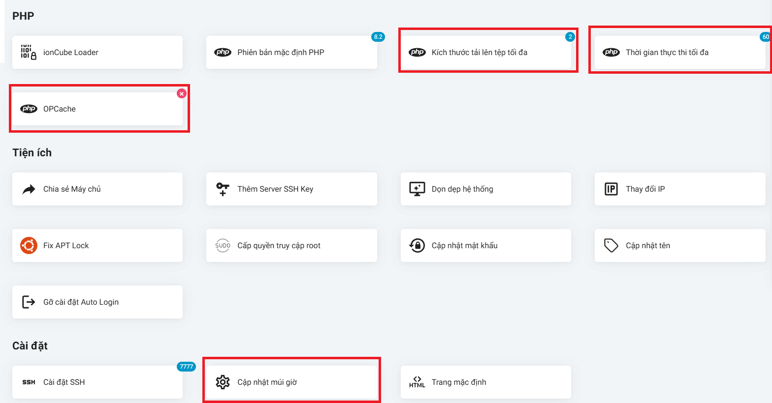 Cài SSL, WordPress, Git-deploy bằng 1 click,