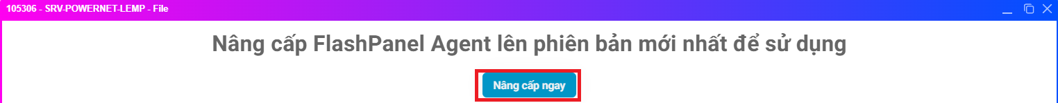 Để cài đặt FlashPanel bạn có thể nhấn vào mục Quản lý File (File Manager) -> Nâng cấp ngay (Upgrade Now) để tiến hành cài đặt FlashAgent lên máy chủ của bạn
