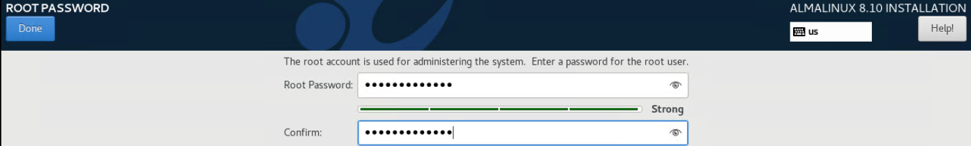 Bước 20: Tại mục User Settings chọn Root Password để đặt mật khẩu cho tài khoản Root > Done