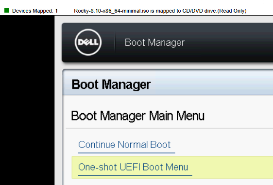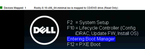 Bước 6: Sau khi đã Mount xong File ISO RockyLinux 8 và khởi động máy chủ thì nhấn F11 để vào Boot Manager
