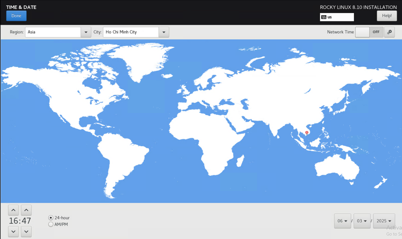 Bước 15: Nhấn chọn Time & Date để cấu hình Timezone Server cho để máy chủ nhấn đúng TimeZone > Done