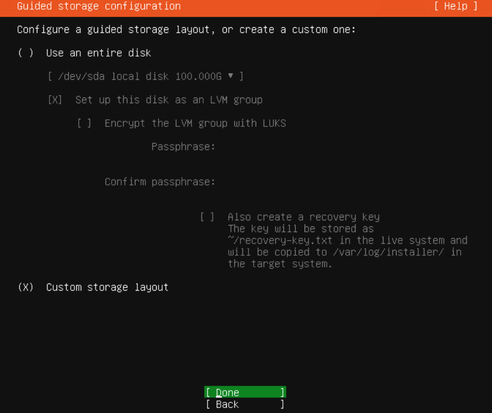 Bước 15: Chọn Custom storage layout để tùy chỉnh phân vùng theo nhu cầu của bạn > Done