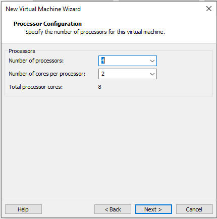 Bước 9: Thiết lập số Core cho máy ảo, với máy ảo Windows nên thiết lập tối thiểu từ 4 vCore trở lên > Nhấn Next