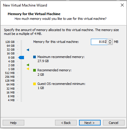 Bước 10: Thiết lập dung lượng RAM cho máy ảo, với máy ảo Windows nên thiết lập tối thiểu 4GB trở lên > Nhấn Next