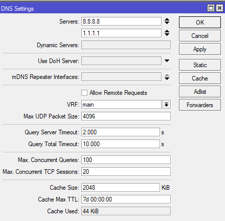 Bạn vào mục IP > DNS và set DNS 8.8.8.8/1.1.1.1 > Apply > OK. Mục đích là để phân giải DNS khi thực hiện tải các Container cho Proxy