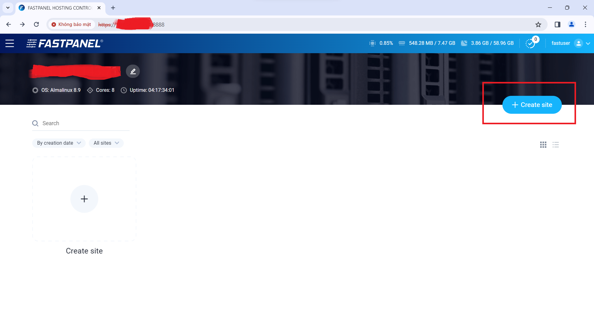 Bước 1: Đăng nhập vào quản trị FastPanel