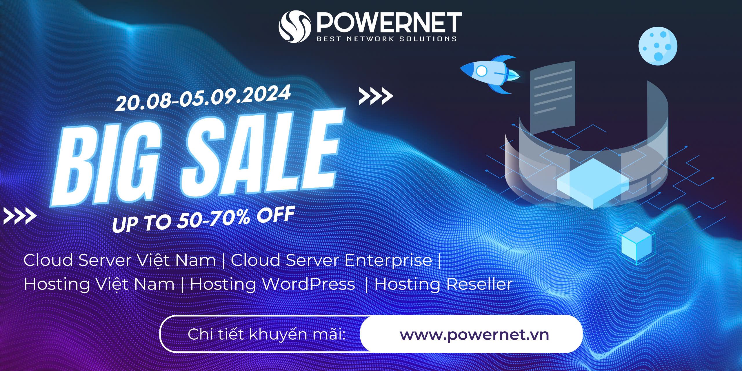 Khi khách hàng đăng ký sử dụng các gói dịch vụ Hosting/Cloud Server trên Website PowerNet trước ngày 05/09/2024 sẽ được khuyến mãi giảm giá lên đến 70%.