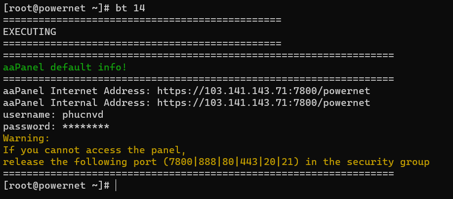 Ngoài ra bạn nhập lệnh bt sau đó nhập vào số 14 tương ứng với (14) View panel default info. Bạn sẽ nhận được thông tin như bên dưới.