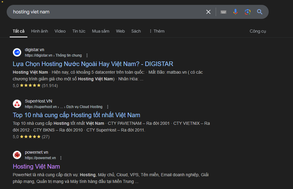 B1: Truy cập Google và gõ từ khóa hosting viet nam